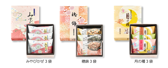 ちょっとしたご挨拶に。従来の人気ギフトから、3袋詰めの商品をつくりました。