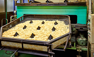 鬼サラダなどの固い食感や、月の種、ハッピーなどパリッパリッとした食感のあられを焼いています。