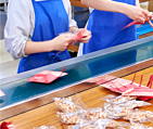 出来上がったあられを包装するのも自社工場内です。同じ商品でも袋詰め、ギフト包装と様々な包装があります。ひとつひとつ丁寧な作業で対応します。